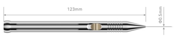 Виготовлений з нержавіючої сталі, гострий зонд з діаметром кінчика 0,1 мм, двосторонній, конусність 6%, з гладкою поверхнею.